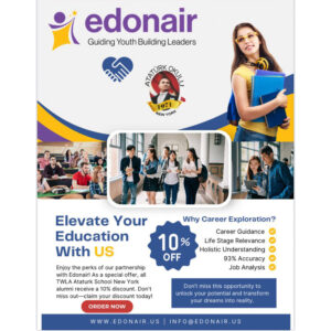 - Çocuğunuzu ne kadar tanıyorsunuz ? Çocuğunuzun güçlü ve zayıf yönlerinin farkına varın! Edonair gelecekteki kariyerleri ve yaşamları için gerçekçi beklentiler geliştirmeleri adına, ebeveynlerin çocuklarının davranış özelliklerini keşfetmelerine ve anlamalarına yardımcı olur. Böylece ebeveynler, eğitim ve meslek yollarına dayanarak çocuklarına, kişisel ilgi alanlarına ve güçlü yönlerine göre doğru üniversite programı seçimlerini keşfetmeleri için rehberlik edebilirler. Edonair in saglamis oldugu test, ebeveynlerin çocuklarının geleceğine yatırım yapmalarına ve buna bağlı olarak günümüzün masraflı eğitim ortamında zaman ve paradan tasarruf etmelerine olanak sağlayacaktır. 300 soruluk bir test. %93 dogruluk payı en yüksek dünyadaki tek test.Bununla kişinin swot analizi karakter analizi yapılabiliyor. Hangi mesleği yapabilir hangisini yapamaz yaklaşık 40 sayfa rapor sunuyor. Ömrün boyunca kullanıyorsun. Çocuğun güçlü ve zayıf yönlerini ortaya çıkartıyor. Daha fazla bilgi icin: https://edonair.us/career-exploration-questionnaire/ Promotion Code: EDONAIR10